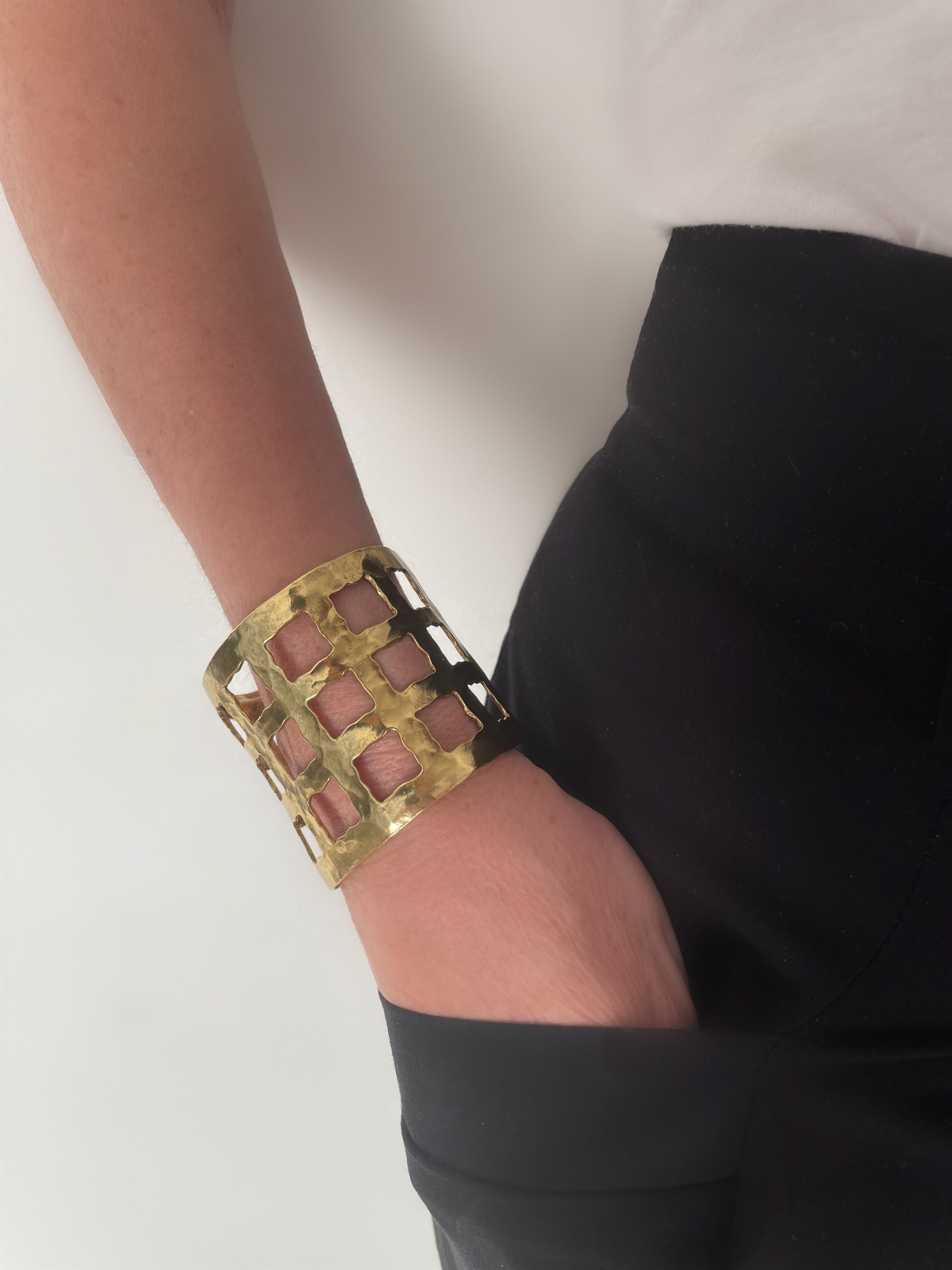 Bracelet doré martelé de conception antique. Son modèle cool et intrigant vous permettra de le porter tous les jours.
