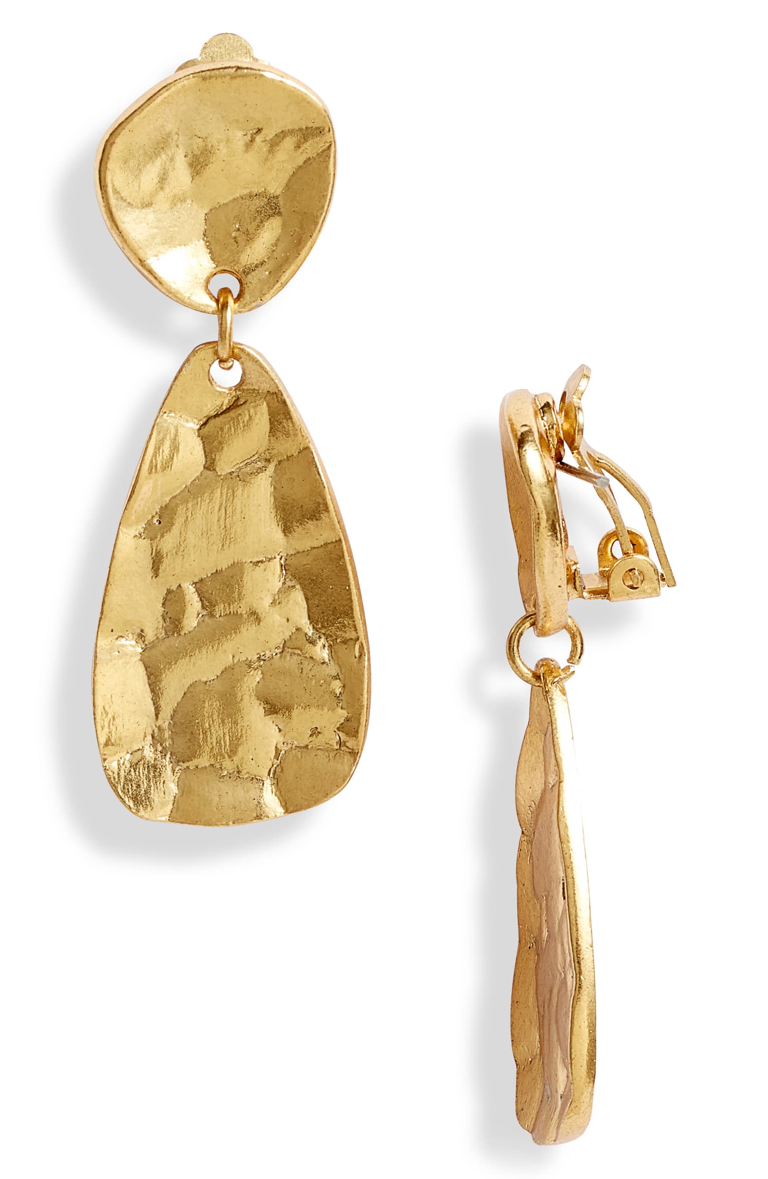 Ces boucles d’oreilles doré à pince organiquement formées et texturées.