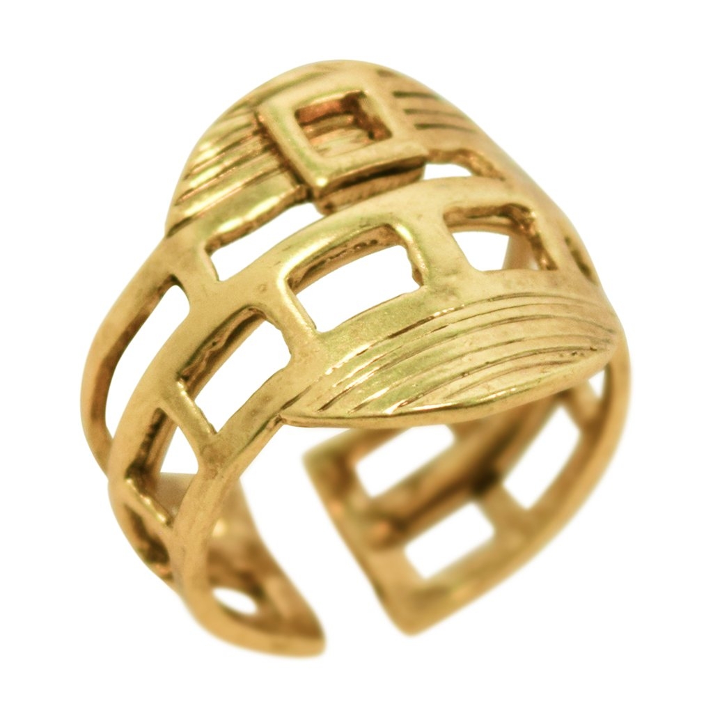 Bague doré à l’or fin épaisse et de texture brossé. Légèrement réglable.