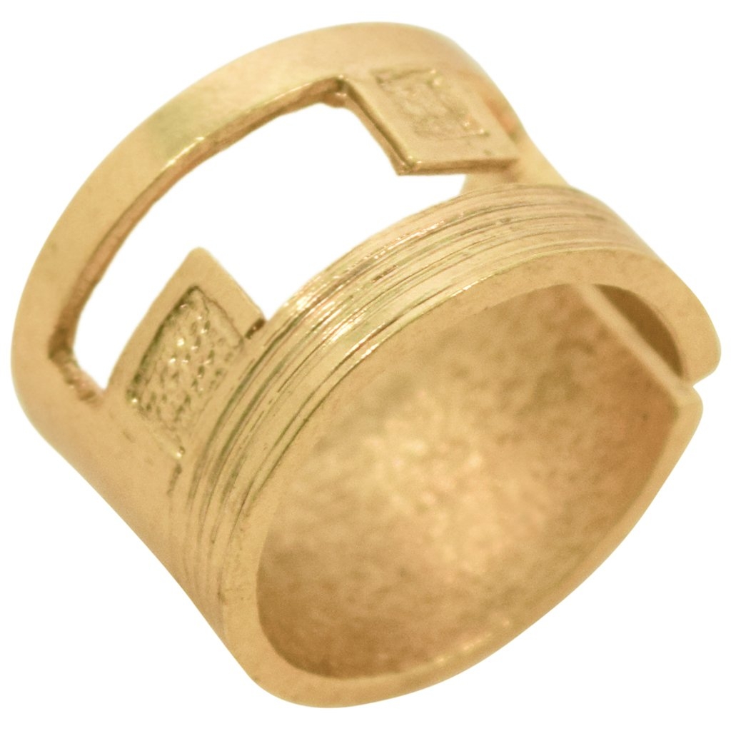 Bague doré à l’or fin épaisse et de texture brossé. Légèrement réglable.